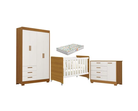 Quarto de Bebê Zaki e Berço Americano Evolution 4 em 1 Branco Acetinado Savana com Colchão Gazin - Reller
