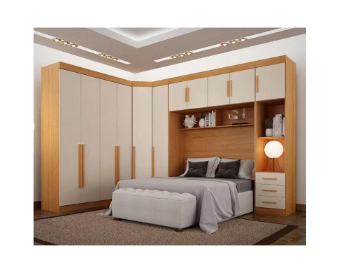 Quarto de Casal Modulado 11 Portas Orion Ambiente Cinamomo Off White - Leifer Móveis