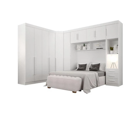 Quarto de Casal Modulado 11 Portas Orion Branco - Leifer Móveis