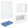 Quarto Infantil 4 Portas Americano com Berço Multifuncional Cleo Ambiente Branco Fosco com Colchão Ortobom - Henn
