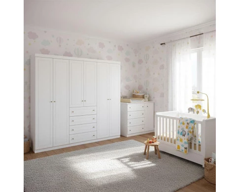 Quarto Infantil Americano 6 Portas Ambiente com Berço Tutto New Branco Fosco - Matic