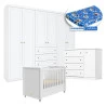 Quarto Infantil Americano 6 Portas com Berço Tutto New Branco Fosco e Colchão Ortobom - Henn