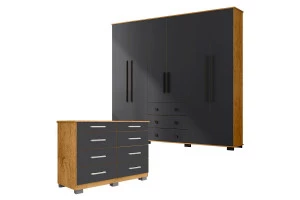 Cômoda 867 4 Gavetas e Guarda Roupa Solteiro Tóquio 4 Portas Castanho Off White - Poquema