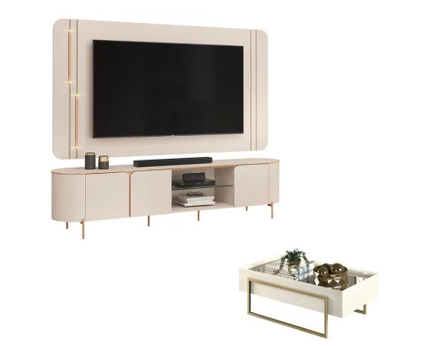 Rack Bancada com Painel Ariana e Mesa de Centro Petri Off White – DJ Móveis
