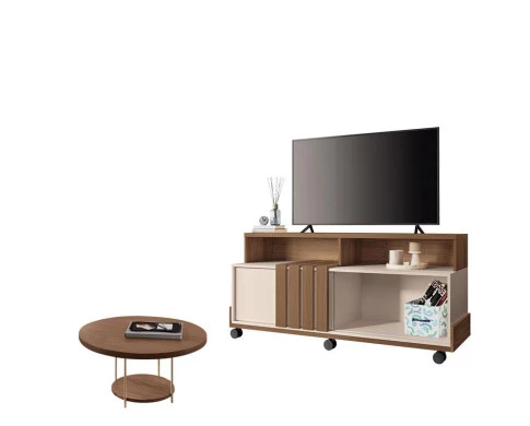 Rack Bancada Graci 1.3 com Mesa de Centro Sky Castanho Off White – HB Móveis