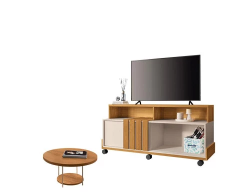 Rack Bancada Graci 1.3 com Mesa de Centro Sky Cinamomo Off White – HB Móveis