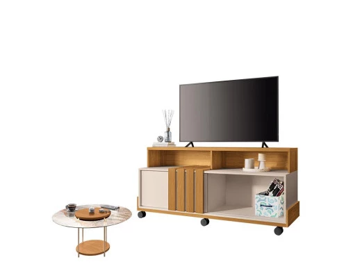 Rack Bancada Graci 1.3 com Mesa de Centro Sky Cinamomo Off White – HB Móveis