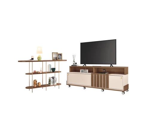 Rack Bancada Graci 1.8 com Aparador Infinity Castanho Off White – HB Móveis