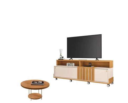 Rack Bancada Graci 1.8 com Mesa de Centro Sky Cinamomo Off White – HB Móveis