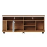 Apresentamos este conjunto de Rack Bancada Jurerê 1.5 e Aparador Riviera, fabricados pela Colibri. O rack possui duas portas giro com detalhe ripado dando um toque sofisticado, cinco nichos, uma prateleira e vem equipado com rodízios proporcionando flexibilidade e praticidade para seu ambiente. O aparador possui 01 gaveta central com corrediças telescópicas, puxador metálico dourado fosco, ripado artesanal nas laterais, peças traseiras com acabamento possibilitando a utilização do móvel para divisão de ambientes e pés em madeira maciça. Fabricados com materiais de alta qualidade que garante resistência e durabilidade aos produtos. Confira mais detalhes e aproveite!
