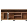 Apresentamos este conjunto de Rack Bancada Jurerê 1.5 e Aparador Riviera, fabricados pela Colibri. O rack possui duas portas giro com detalhe ripado dando um toque sofisticado. Possui cinco nichos, e uma prateleira para expor e organizar seus objetos, pertences, e aparelhos eletrônicos. Para facilitar a movimentação e limpeza vem equipado com rodízios proporcionando flexibilidade e praticidade para seu ambiente. A mesa conta com detalhe ripado artesanal, nichos interno em dois lados de forma espelhada, pés em madeira maciça. Fabricados com materiais de alta qualidade que garante resistência e durabilidade aos produtos. Confira mais detalhes e aproveite!