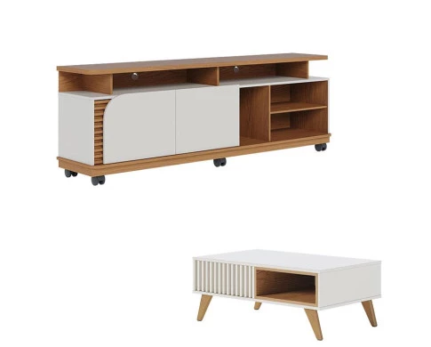 Rack Bancada Jurerê 1.8 Freijó Off White Matte com Mesa de Centro Jeri Off White Freijó - Colibri
