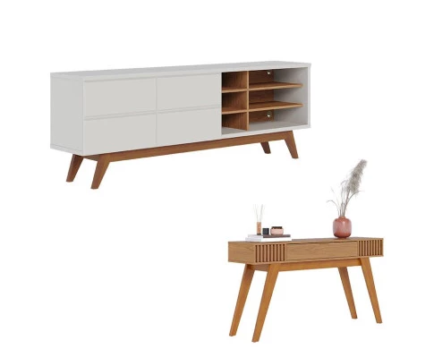 Rack Bancada Noronha 1.8 Off White Matte Freijó com Aparador Riviera Freijó – Colibri