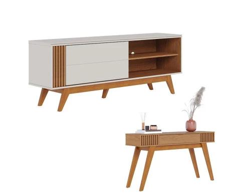 Rack Bancada Otawa Off White Freijó com Aparador Riviera Freijó – Colibri