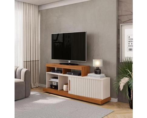Rack Bancada para Sala Ambiente Scala Freijó Off White – DJ Móveis