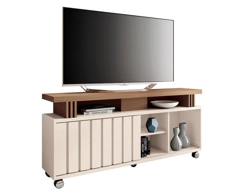 Rack Bancada para Sala Rivera 1.3 Off White Castanho – HB Móveis