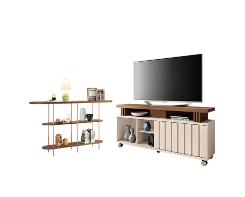 Rack Bancada para Sala Rivera 1.3 Off White Castanho – HB Móveis