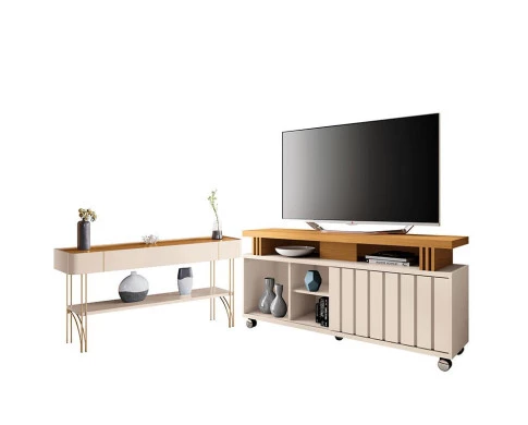 Rack Bancada para Sala Rivera 1.3 Off White Cinamomo – HB Móveis