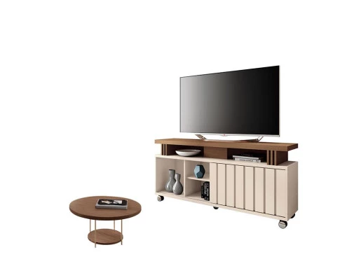 O rack da linha Rivera 1.3 conta com uma porta de correr que apresenta um detalhe ripado. A prateleira removível permite se adaptar de acordo com as necessidades com Aparador Vivant deixa sua sala de estar toda elegante. Equipado com rodízios facilita na movimentação. Suportando TVs de até 50 polegadas. A mesa de centro da linha Luna complementa perfeitamente o conjunto. Com seu design ripado, adiciona uma textura interessante e um toque contemporâneo ao ambiente. Fabricados pela HB Móveis, este conjunto é a combinação ideal para quem busca modernidade e praticidade, proporcionando uma sala de estar organizada, elegante e acolhedora. Confira e garanta o seu!