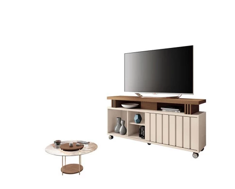 O rack da linha Rivera 1.3 conta com uma porta de correr que apresenta um detalhe ripado. A prateleira removível permite se adaptar de acordo com as necessidades. Equipado com rodízios facilita na movimentação e com a Mesa de Centro Sky ajudando a deixar mais bonita sua sala de estar. Suportando TVs de até 50 polegadas. A mesa de centro da linha Luna complementa perfeitamente o conjunto. Com seu design ripado, adiciona uma textura interessante e um toque contemporâneo ao ambiente. Fabricados pela HB Móveis, este conjunto é a combinação ideal para quem busca modernidade e praticidade, proporcionando uma sala de estar organizada, elegante e acolhedora. Confira e garanta o seu!