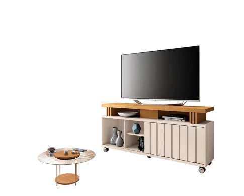 Rack Bancada para Sala Rivera 1.3 Off White Cinamomo – HB Móveis