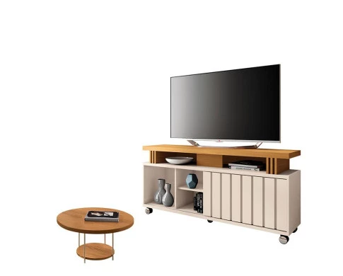 Rack Bancada Rivera 1.3 e Mesa de Centro Sky Off White Cinamomo – HB Móveis