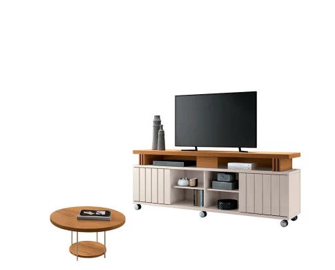Rack Bancada Rivera 1.8 com Mesa de Centro Sky Off White Cinamomo – HB Móveis
