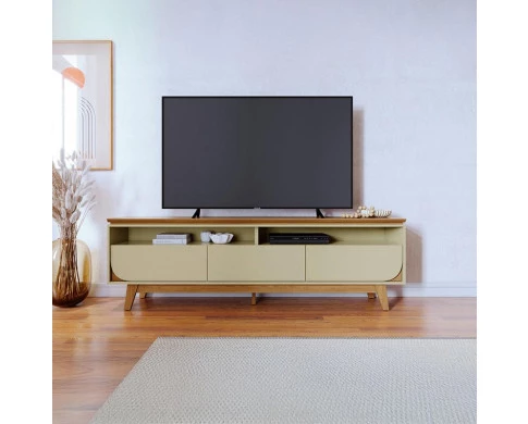 Te aprensento esse Móvel Rack Bnacada Selene que vem com trés gavetas com corrediças telescópicas, gavetas laterais com detalhes curvo, com tampo da Tv Suspenso em 25 mm com bordas chanfrada, pés usinados, painéis em MDP de 15 e 25mm, produzida na Madetec, é aquela escolha perfeita para sua sala de estar não perca e adquire.