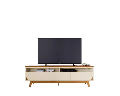 Te aprensento esse Móvel Rack Bnacada Selene que vem com trés gavetas com corrediças telescópicas, gavetas laterais com detalhes curvo, com tampo da Tv Suspenso em 25 mm com bordas chanfrada, pés usinados, painéis em MDP de 15 e 25mm, produzida na Madetec, é aquela escolha perfeita para sua sala de estar não perca e adquire.
