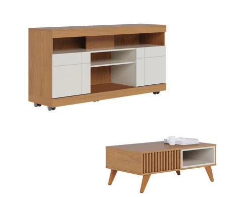 Rack Bancada Yara com Mesa de Centro Jeri Freijó Off White - Colibri