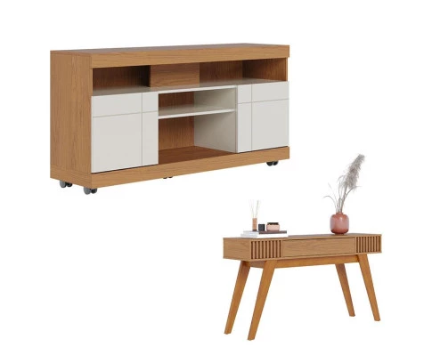 Rack Bancada Yara Freijó Off White com Aparador Riviera Freijó – Colibri